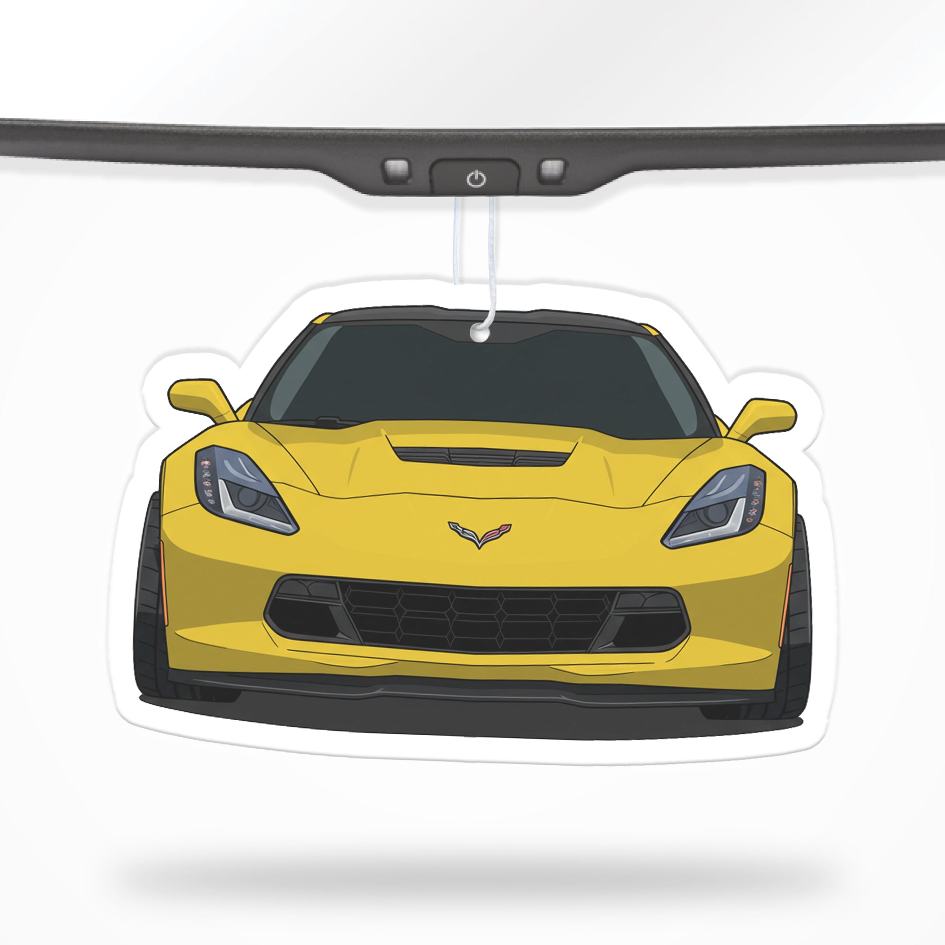 Custom die cut air freshener designed in the shape of a C7 Corvette. FREE vinyl sticker included. Premium air fresheners that are made from high-quality materials are designed to not only eliminate bad odors but also infuse your car with your favorite scents.