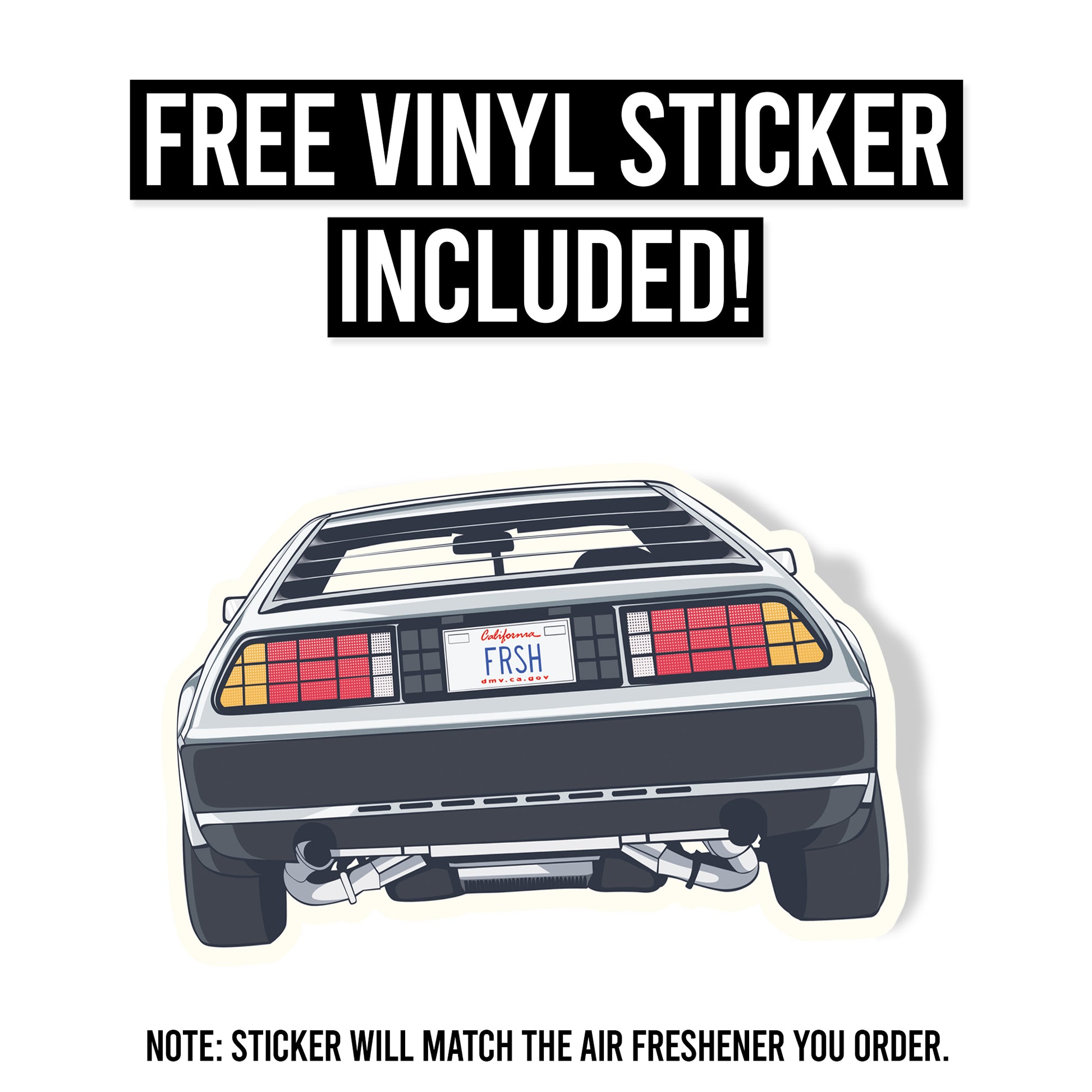 Custom die cut air freshener designed in the shape of a DeLorean DMC-12. FREE vinyl sticker included. Premium air fresheners that are made from high quality materials designed not only eliminate bad odors but also infuse your car with your favorite scents.