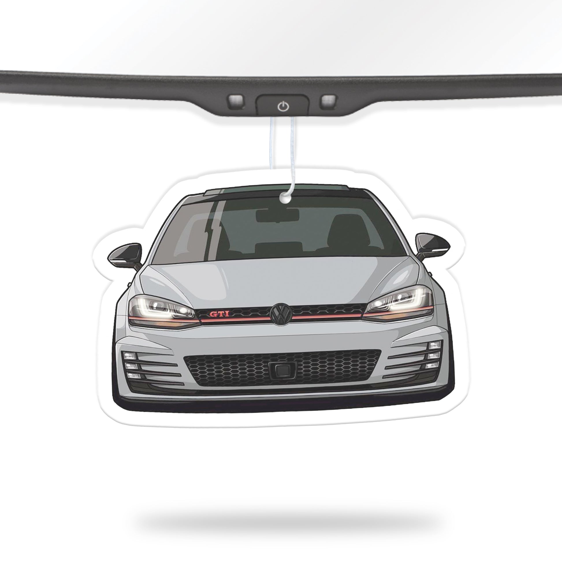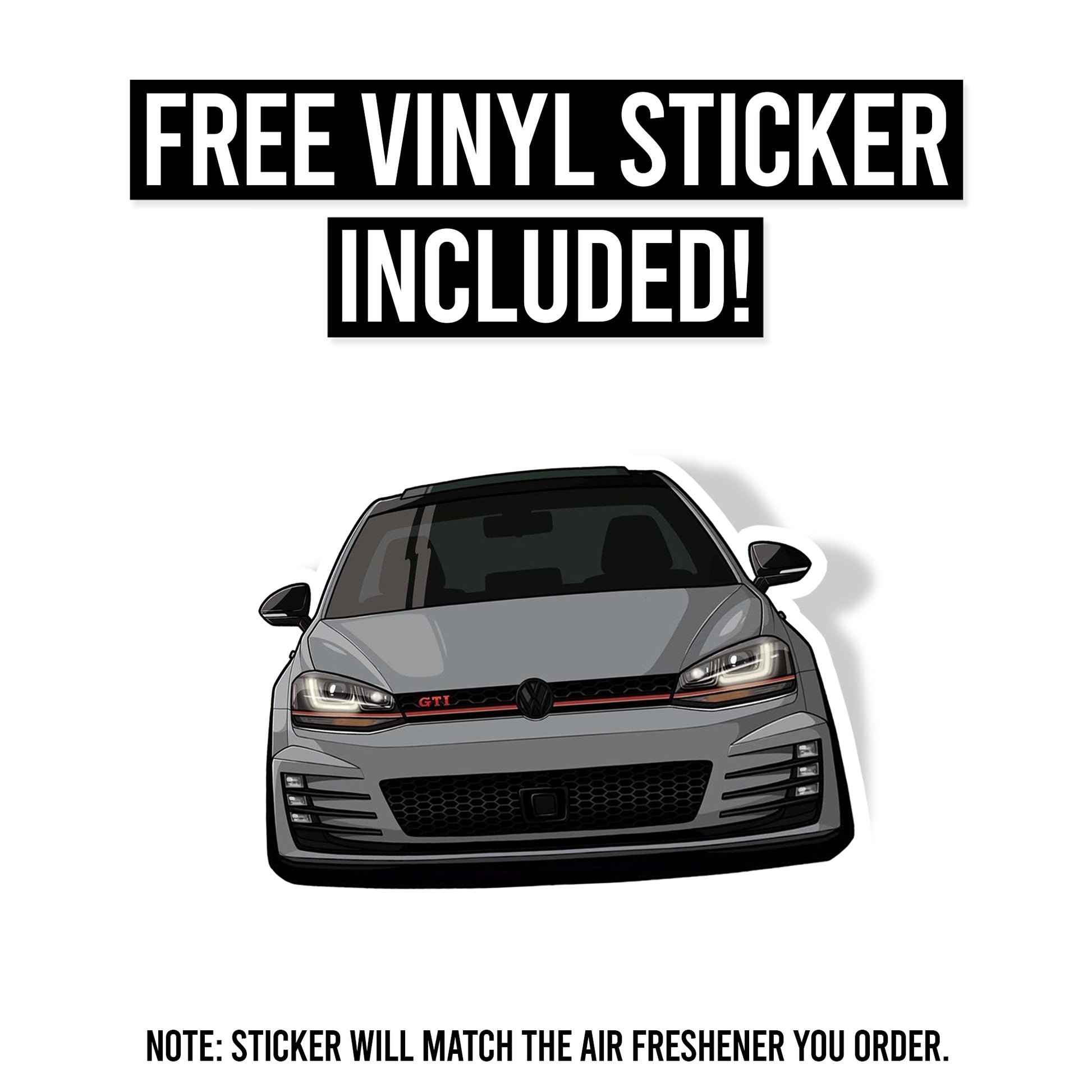 Custom die cut air freshener designed in the shape of a VW GTI. FREE vinyl sticker included. Premium air fresheners that are made from high quality materials designed not only eliminate bad odors but also infuse your car with your favorite scents.