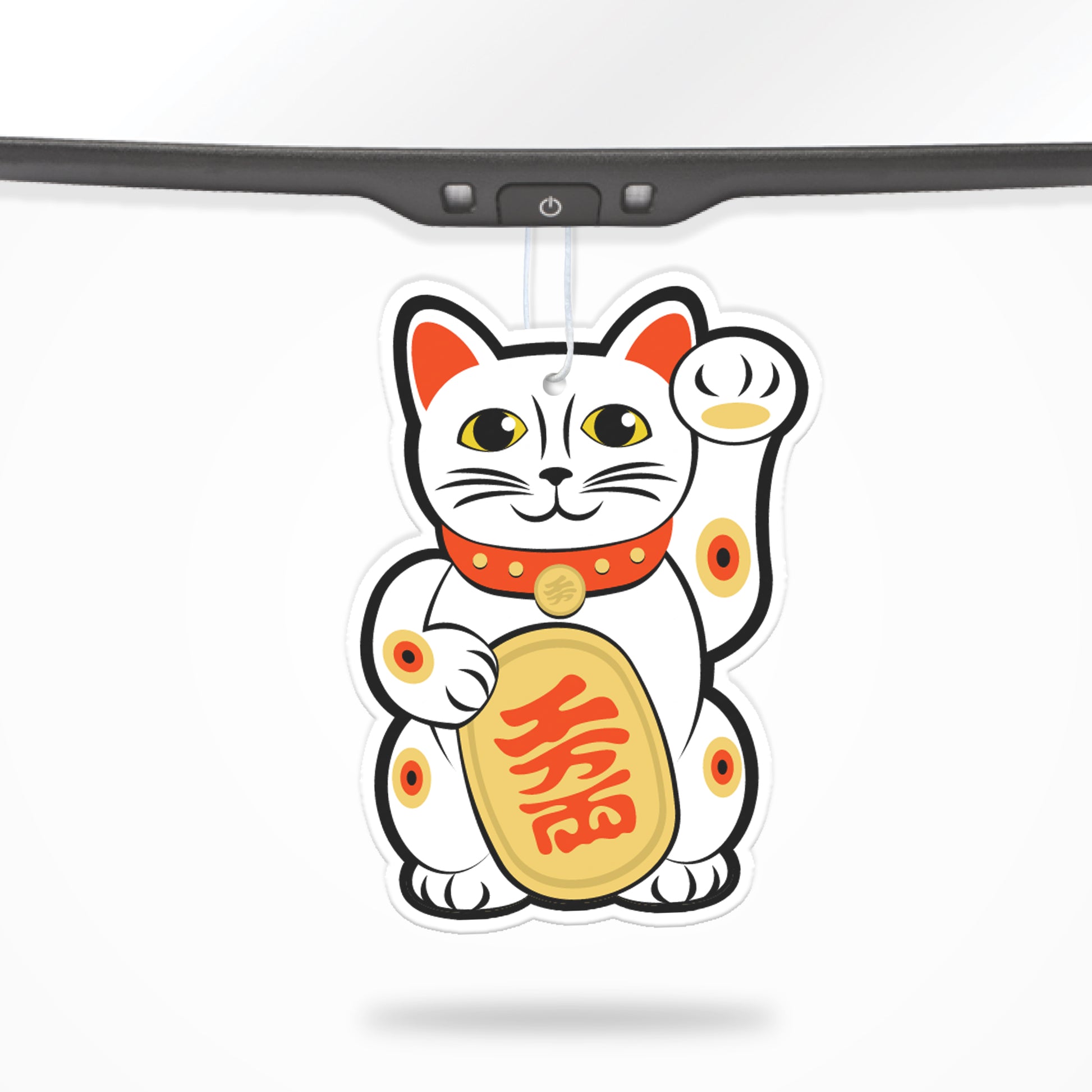 Custom die cut air freshener designed in the shape of Lucky Cat. FREE vinyl sticker included. Premium air fresheners that are made from high quality materials designed not only eliminate bad odors but also infuse your car with your favorite scents.